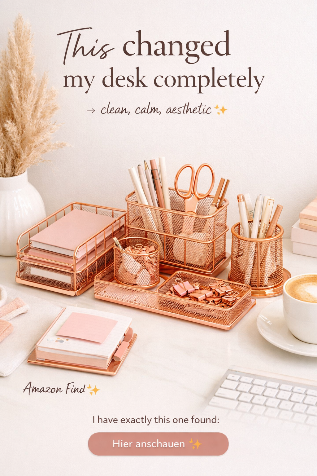 Dieser Organizer sorgt für Ordnung, bringt sofort Ordnung und diesen cleanen, femininen Aesthetic Look auf deinen Schreibtisch. Ich habe genau dieses hier gefunden: